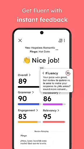 Pingo AI offers several distinctive features that make language learning both effective and enjoyable. First is the app's use of results-driven artificial intelligence to create dynamic, interactive conversations. Unlike traditional language apps that rely on static modules, Pingo AI adapts to each user's skill level and pace, providing a more customized learning experience.